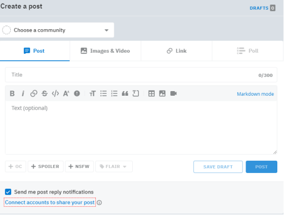 你可以发布文字,图片,视频,链接以及投票到自己主页或任意社区。但是,每个社区的审核规则不尽相同,必须遵守每个社区的提交规则。新用户还必须积累到一定数量的Karma才有资格发布内容到其他社区,否则,系统会自动判定为垃圾内容,导致无法发布。